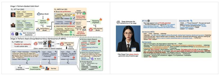 Veritas 框架等于这一死力的具体体现。通过阿谀多模态大言语模子( MLLM )和方式感知推理( Pattern-aware Reasoning )机制,团队突破了传统大模子纯文本想维链的厌世,使得模子在面对未知生成器时,能展现出更强的稳妥性和推理材干。