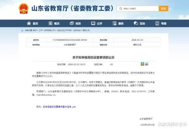 学校位于山东济南市,以原燕山学院明水校区为基础,进行全场地升级改良。截止到2026年3月,山东省培育厅公示拟求教竖立空天信息大学为公办本科高校,学校“转正”在即,预测将于2026年认真招生。