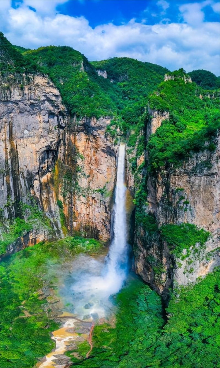 数据:单级落差 314 米,瀑流上窄下宽(上端约 6 米,下端 20 余米)。