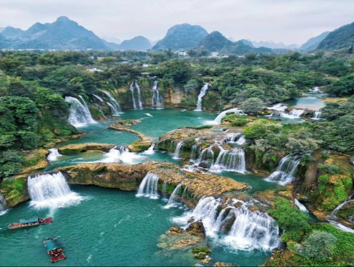 特质:归春河上,中越两国共赏。三级跌落,宽 200 余米。可乘竹筏近不雅,碧水青山,仙气缭绕(《花千骨》取景地)。