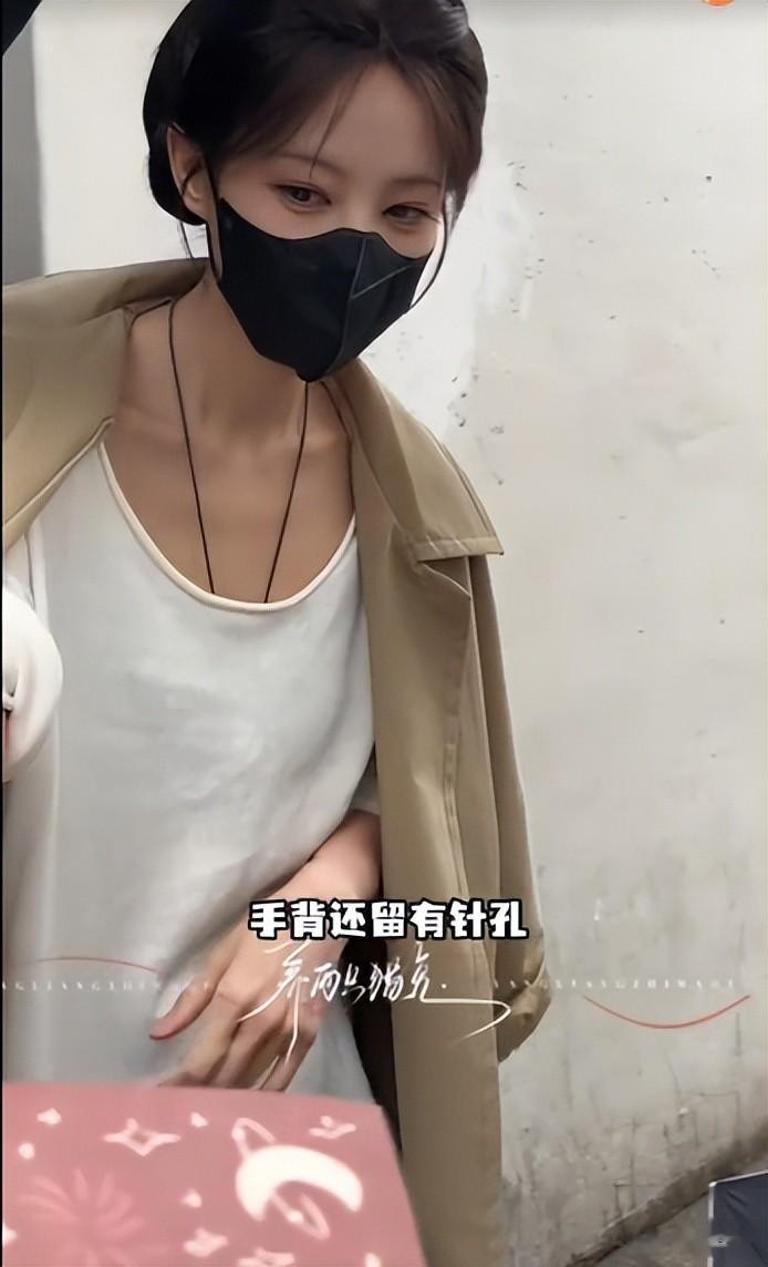 3月23日,剧组拍淋雨戏,她在冷水里整整淋了两个小时,拍完就地就急性过敏,脸肿、身上起红疹,连夜去急诊输液,手背上留住好几个针孔。