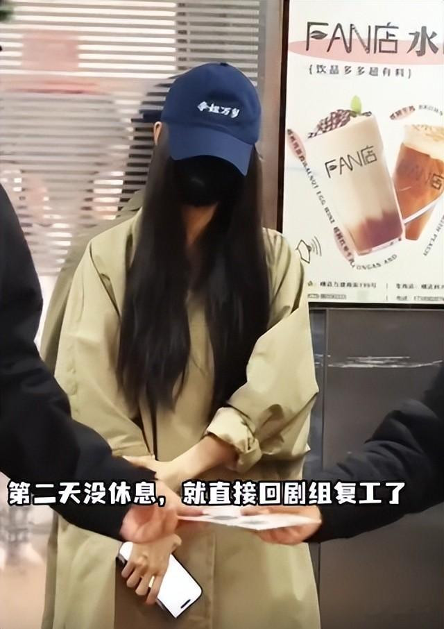 按理说这种情况该好好休息几天,成果她第二天就回剧组复工,少量没迟误程度。