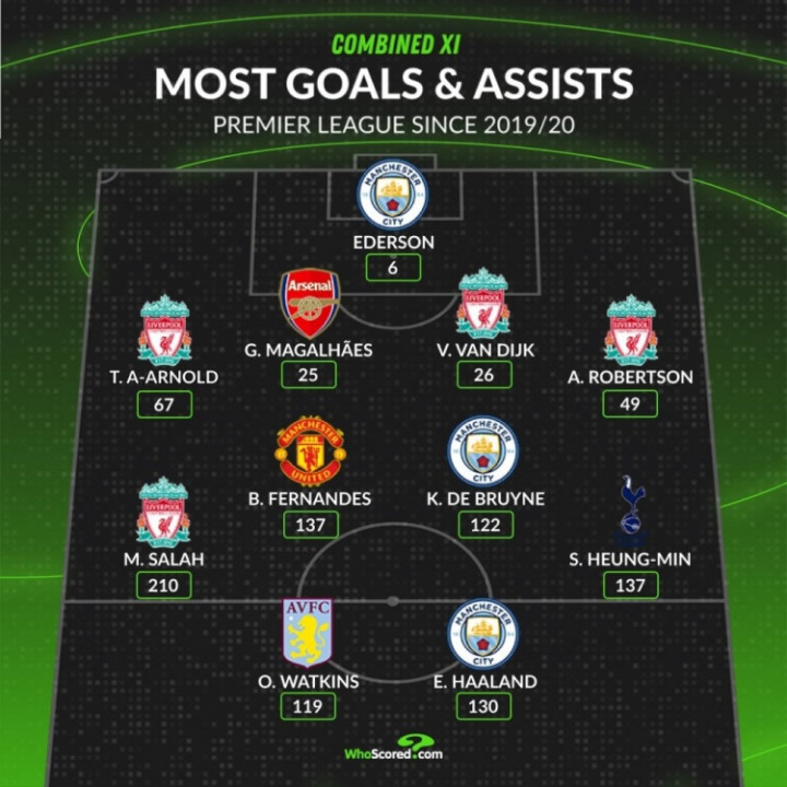 直播吧4月14日讯whoscored统计了2019-20赛季以来的英超径直参与进球最多气势,利物浦4将、曼城3东谈主。