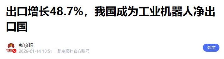 中国机器东说念主出海,最常见的并不是“炫技”,而是“干活”。2025年中国工业机器东说念主出口增长48.7%,况兼初度逾越入口,成为工业机器东说念主净出口国。