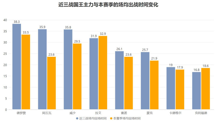 那么为什么国王就突然强势起来了呢?阵容的变化是最大的变数。小萨与基根穆雷的休战令国王更加依赖其余主力,而施罗德的禁赛令其余主力获得了更多的出场时间与机会,现在的国王演变为了昔日雷霆三少的模式: