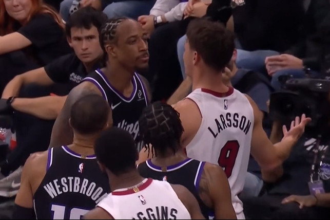 直播吧1月21日讯NBA常规赛,热火130-117战胜国王。在比赛中,热火球员拉松和国王球员德罗赞发生了两次冲突。