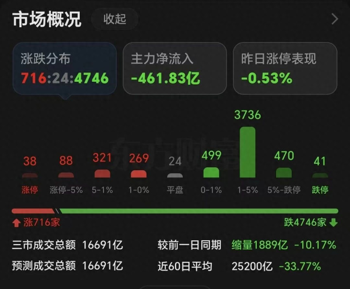 周五收盘,笃信许多散户一又友齐熬不住了,满屏的绿色,妥妥的明朗上坟既视感 行情有多惨?4700多家个股下降,41家平直跌停,信守已久的3900点整数关隘,照旧没能守住,更让东谈主揪心的是,成交量平直萎缩到16691亿,流动性陆续收紧,老乡们,你们齐还在宝石吗?