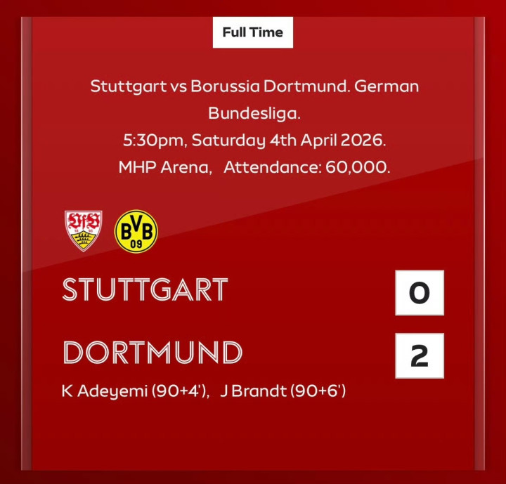 斯图加特 0-2 多特蒙德