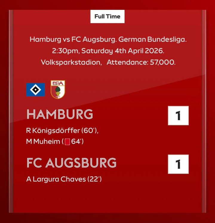 汉堡 1-1 奥格斯堡