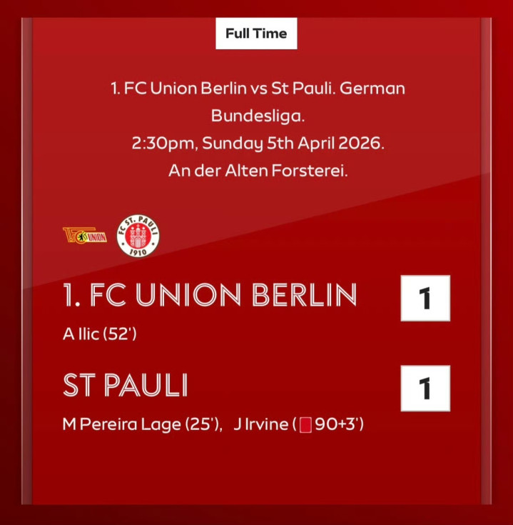 柏林联 1-1 圣保利