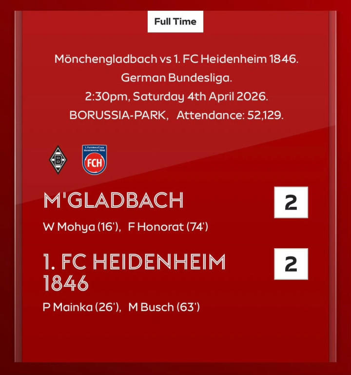 门兴格拉德巴赫 2-2 海登海姆