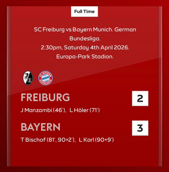 弗赖堡 2-3 拜仁慕尼黑