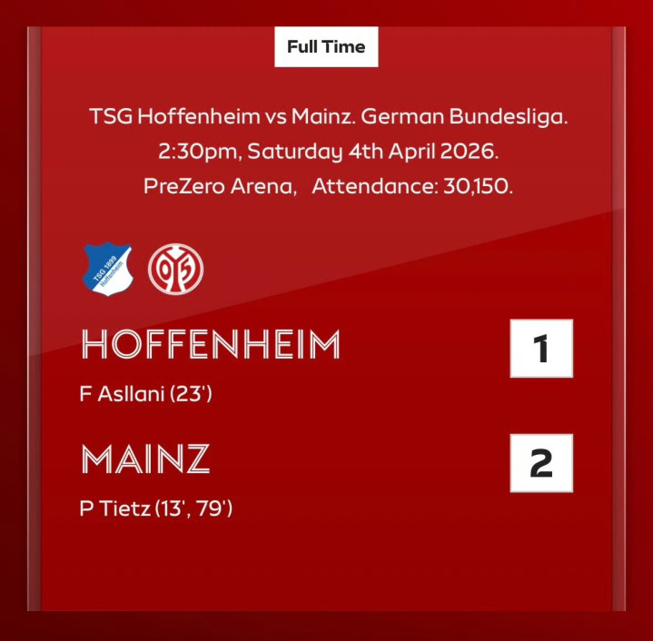 霍芬海姆 1-2 好意思因茨