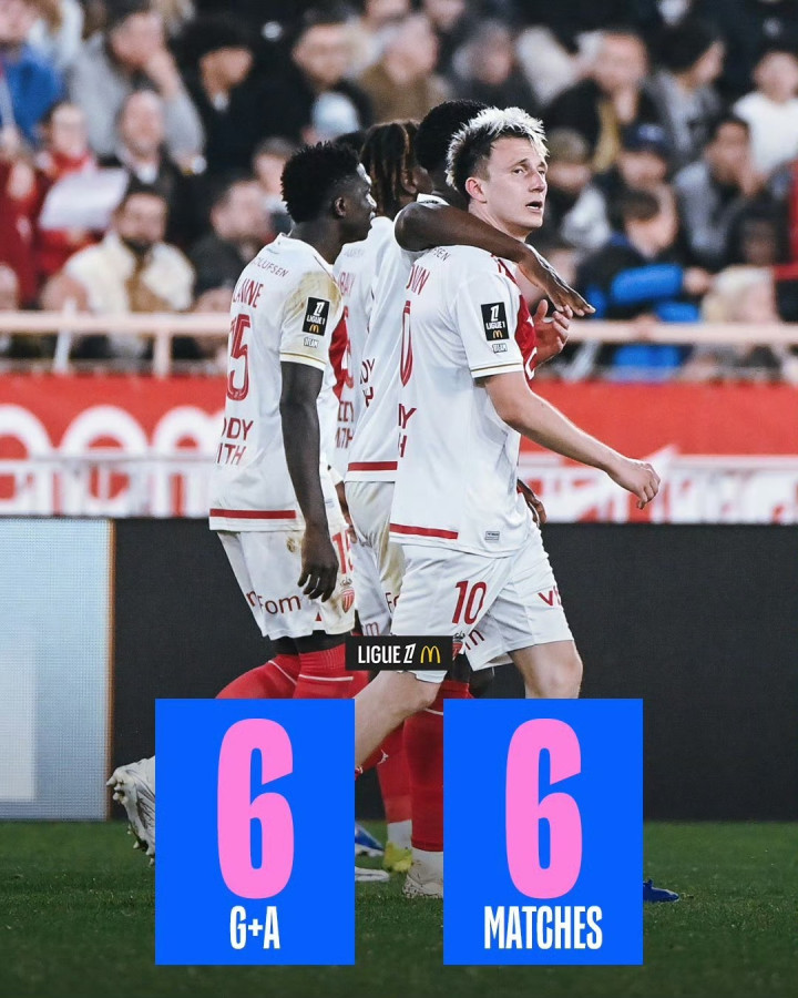 好意思国锋霸! ⚽️ 摩纳哥弓手巴洛贡照旧无间7场联赛均赢得进球了