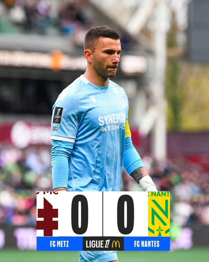 梅斯主场对阵南特,两边均未能赢得进球,最终0-0战平。