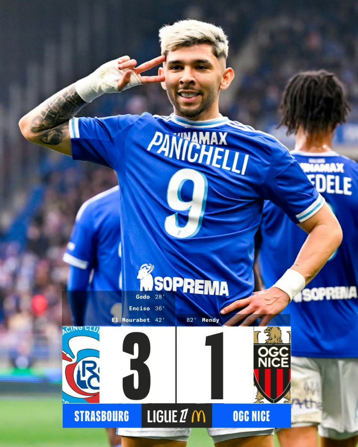 第28分钟,盖拉·杜埃助攻戈多破门,斯特拉斯堡1-0跨越尼斯。