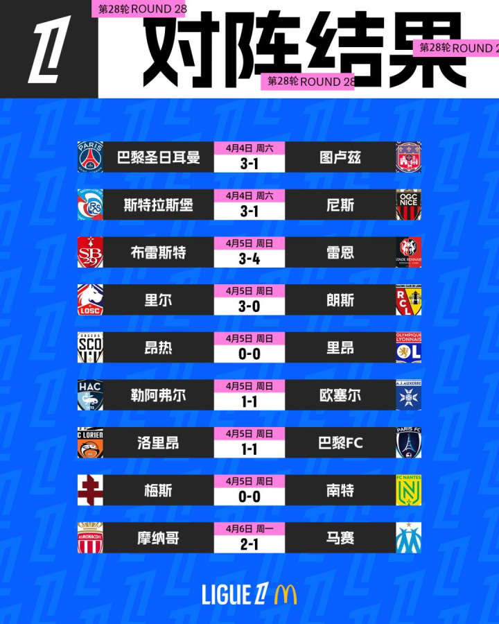 开云app在线体育 法甲第28轮综述|大巴黎3-1轻取图卢兹, 朗斯0-3客负里尔
