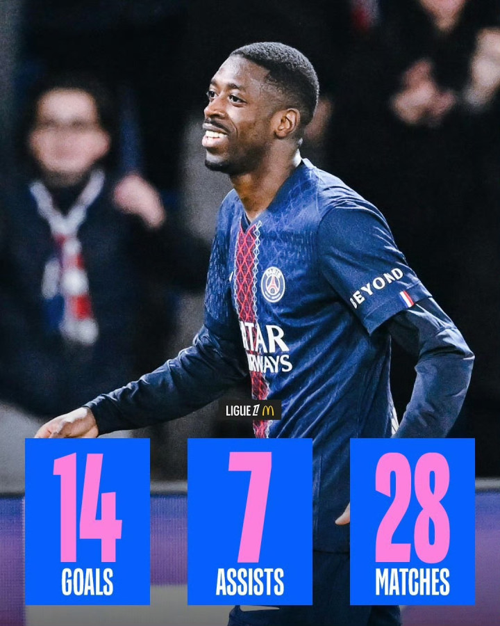 ✨ 登贝莱的赛季 28场比赛,14球7助